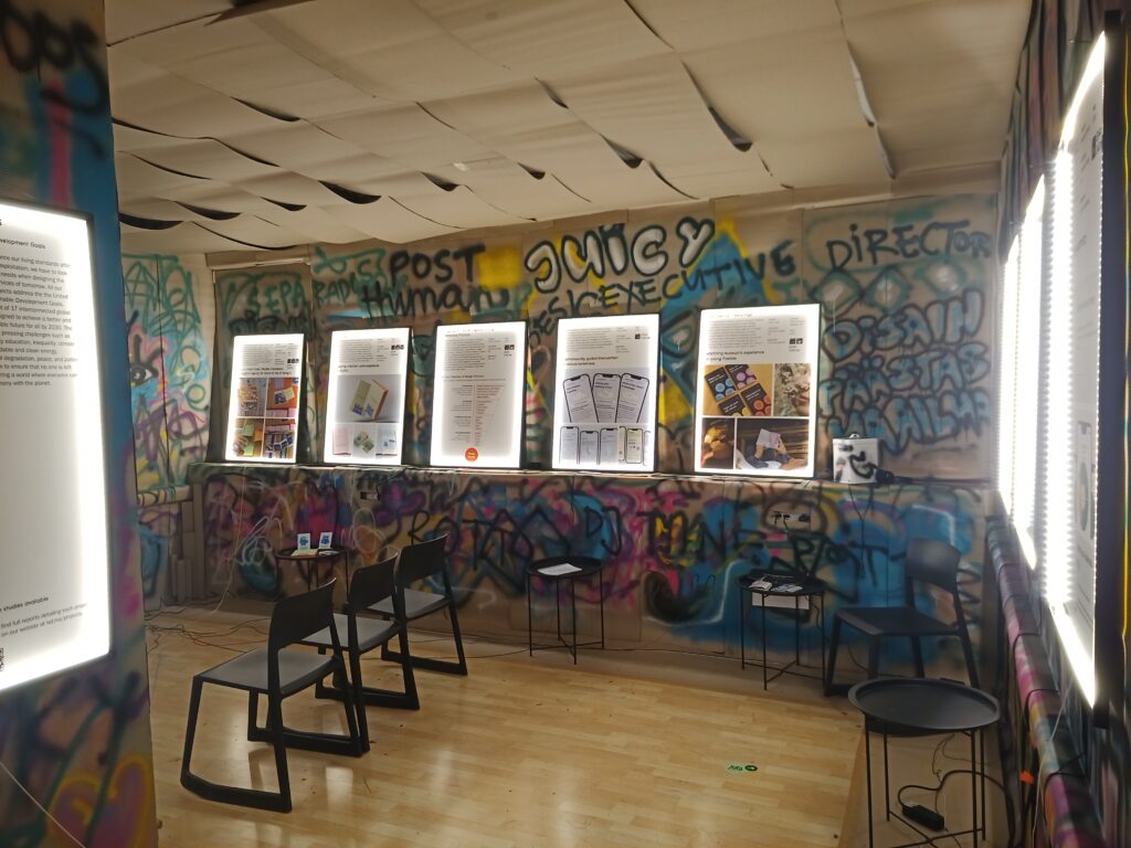 Made for Estonian Academy of Arts graduation works exhibition TASE’25 interaction design MA program’s expo. Picture frames with lights. Visitor chooses a video to play by plugging a “cable” into a box.